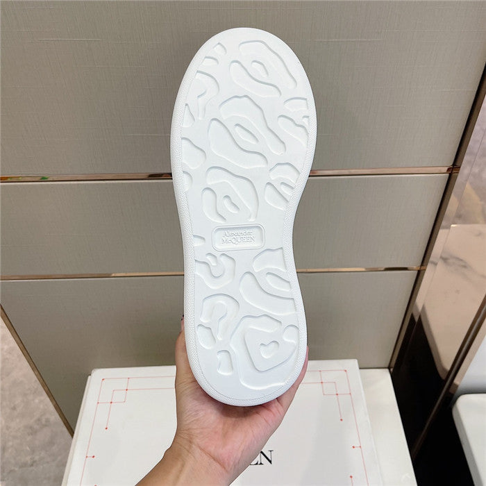 Sneakers allacciate in pelle bianca liscia con punta arrotondata e dettaglio in pelle bianca sul tallone. Lacci larghi piatti e logo Alexander McQueen sulla linguetta e sul tallone. Suola oversize in gomma.