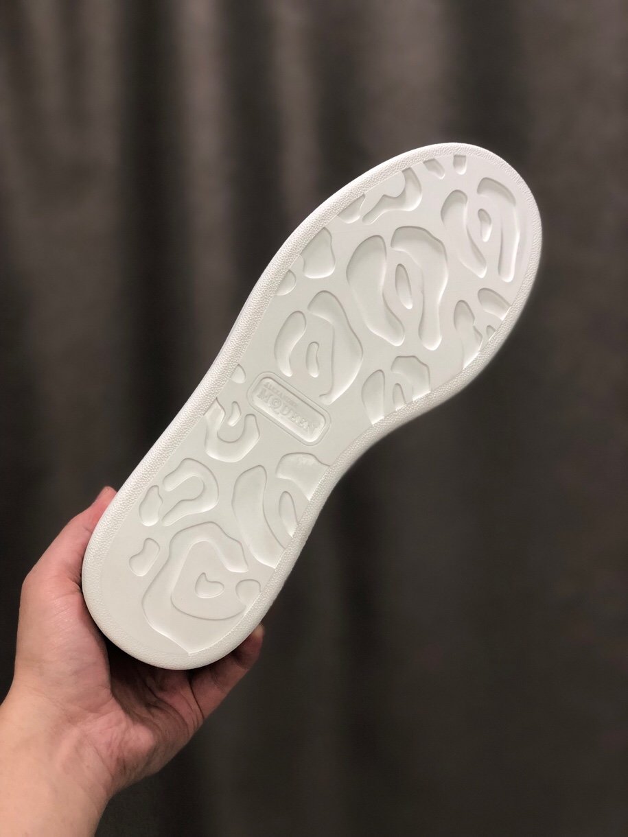 Sneakers allacciate in pelle bianca liscia con punta arrotondata e dettaglio in pelle bianca sul tallone. Lacci larghi piatti e logo Alexander McQueen sulla linguetta e sul tallone. Suola oversize in gomma.