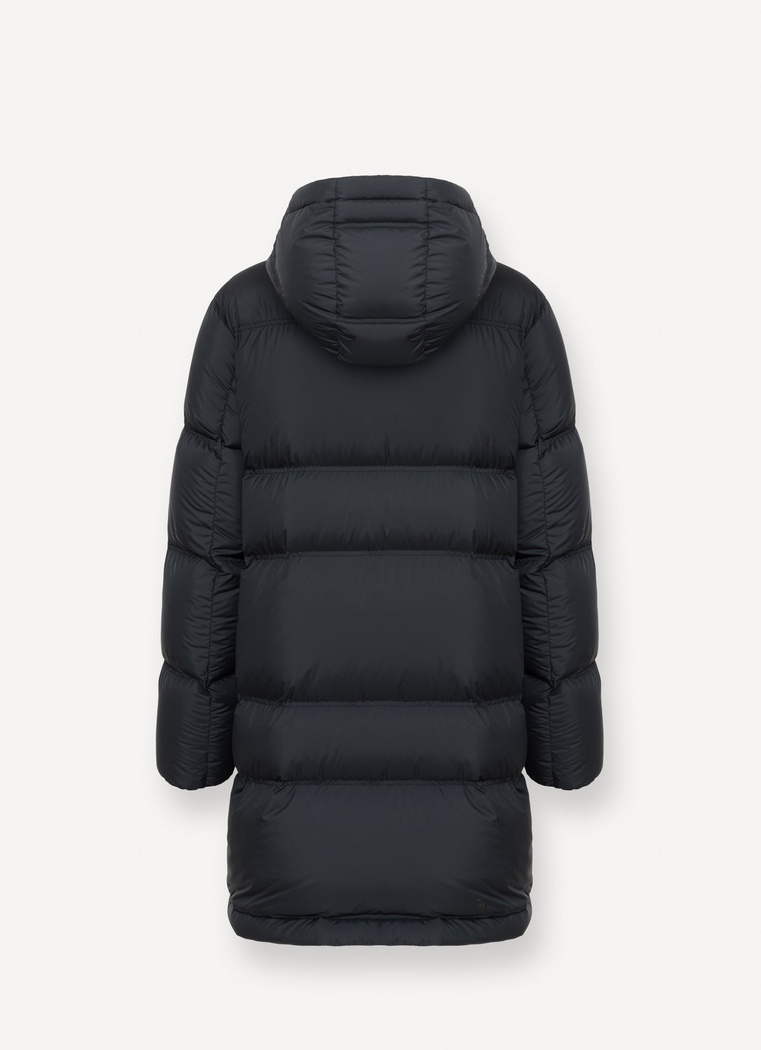 Maxi volumi e lunghezza caratterizzano il piumino da uomo, mentre il cappuccio offre calore e comfort in inverno, completando il look con un tocco distintivo.